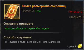Билет розыгрыша сокровищ