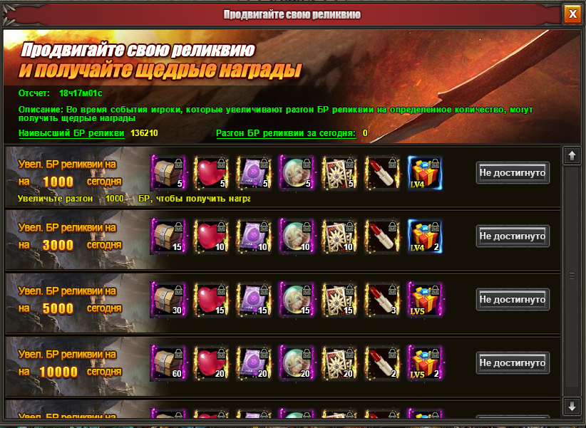 Продвижение реликвии