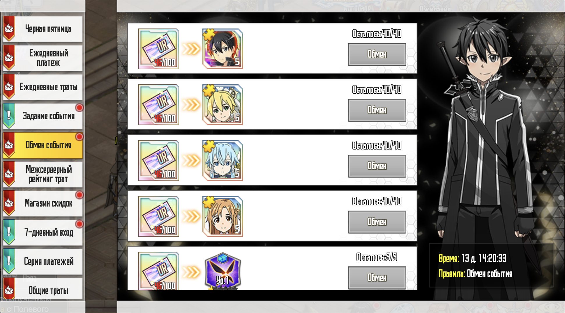 Ч.П. обмен события